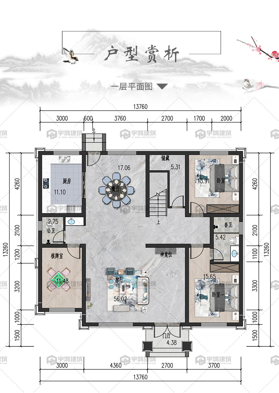成品圖紙> 二層新中式磚混結(jié)構(gòu)別墅占地168平自建別墅
