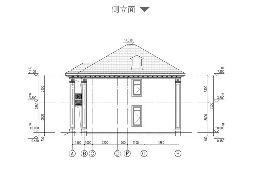 建筑平面圖:一層平面圖,二層平面圖; 建筑立面圖:東立面圖,西立面圖,南立面圖,北立面圖,剖面圖; 大樣圖:樓梯詳圖,細部大樣,門窗大樣 |