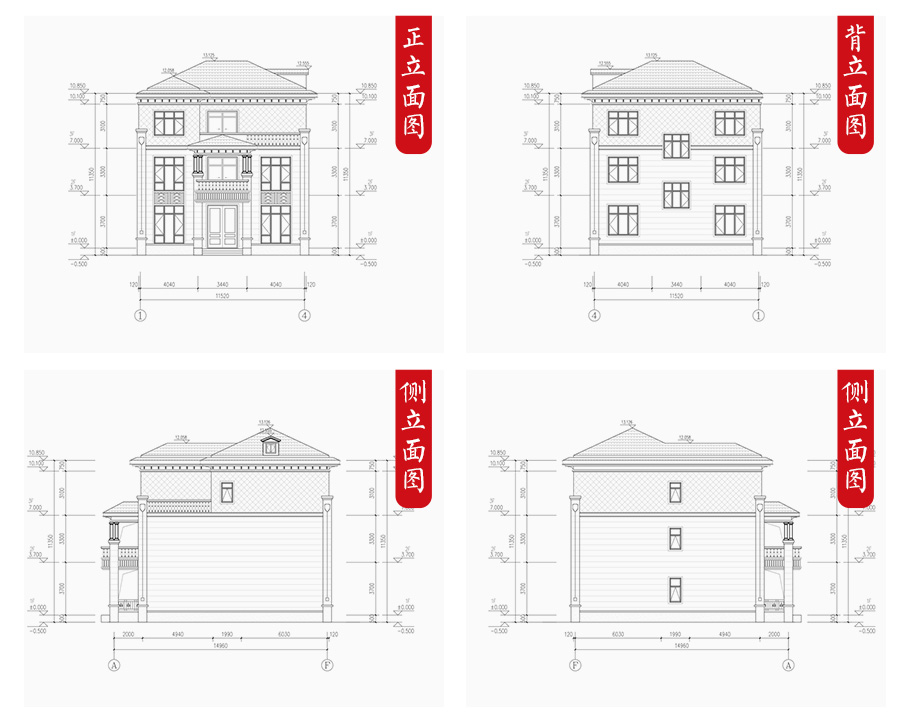 建筑平面圖:一層平面圖,二層平面圖,三層平面圖; 建筑立面圖:東立面圖,西立面圖,南立面圖,北立面圖,剖面圖; 大樣圖:樓梯詳圖,細部大樣,門窗大樣 |