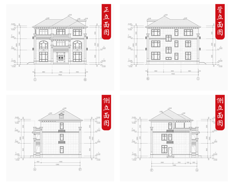 建筑平面圖:一層平面圖,二層平面圖,三層平面圖; 建筑立面圖:東立面圖,西立面圖,南立面圖,北立面圖,剖面圖; 大樣圖:樓梯詳圖,細(xì)部大樣,門窗大樣 |