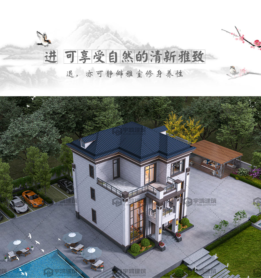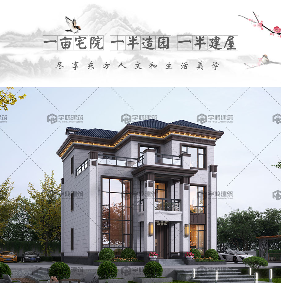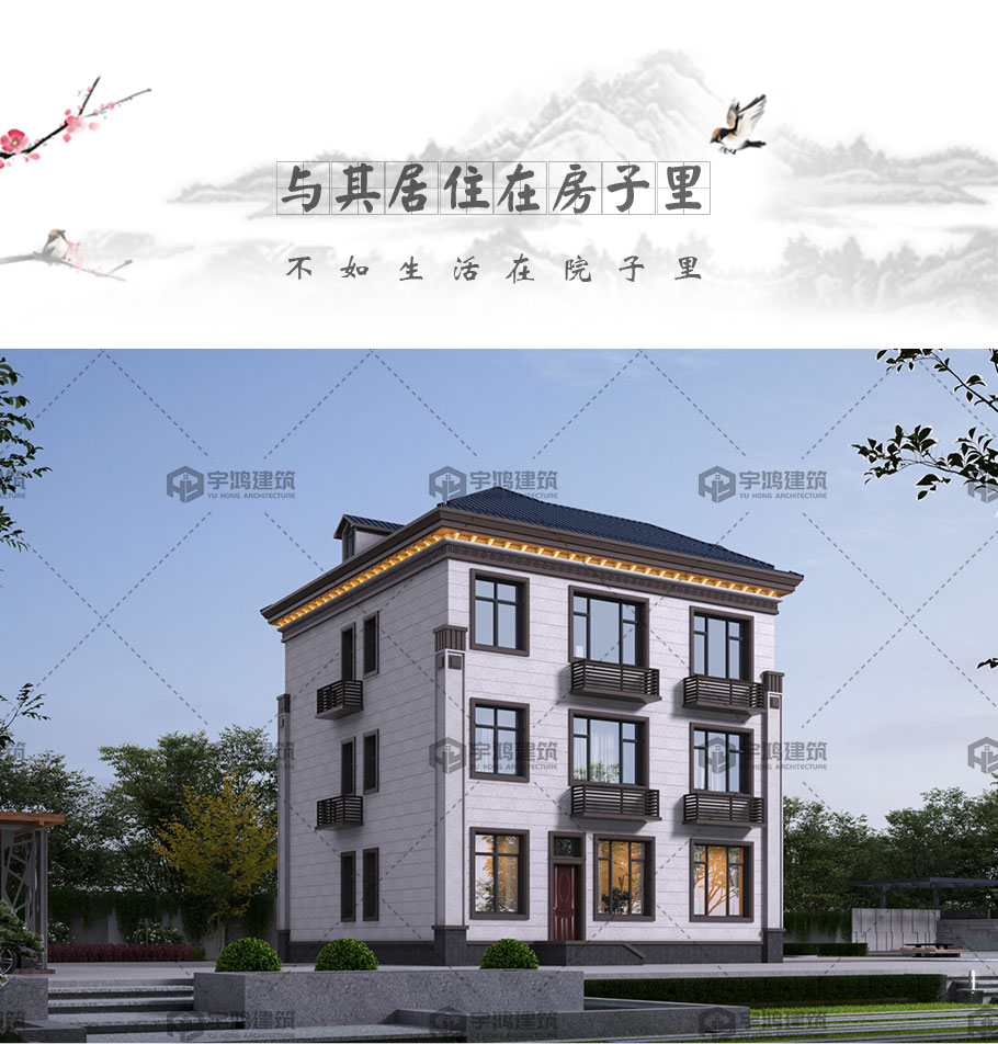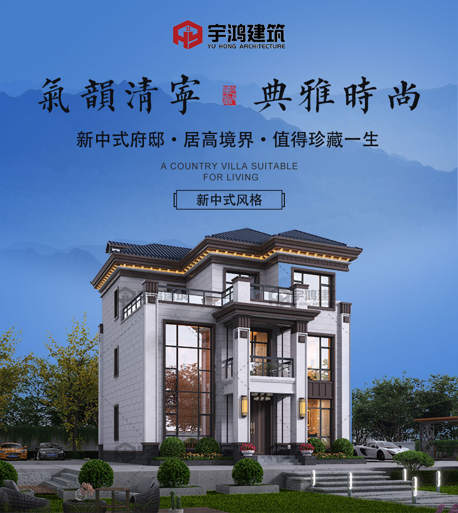 占地127平三層新中式別墅磚混結構自建別墅圖紙