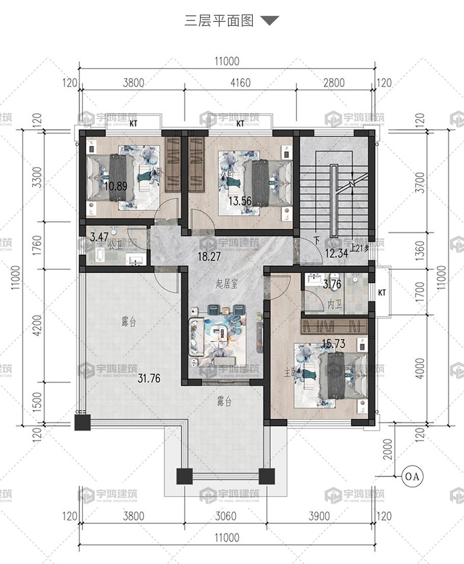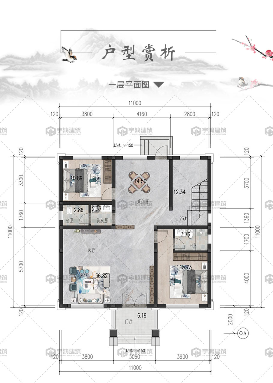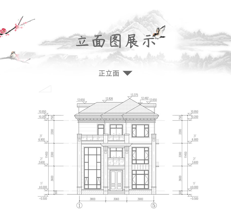 占地127平三層新中式別墅磚混結構自建別墅圖紙