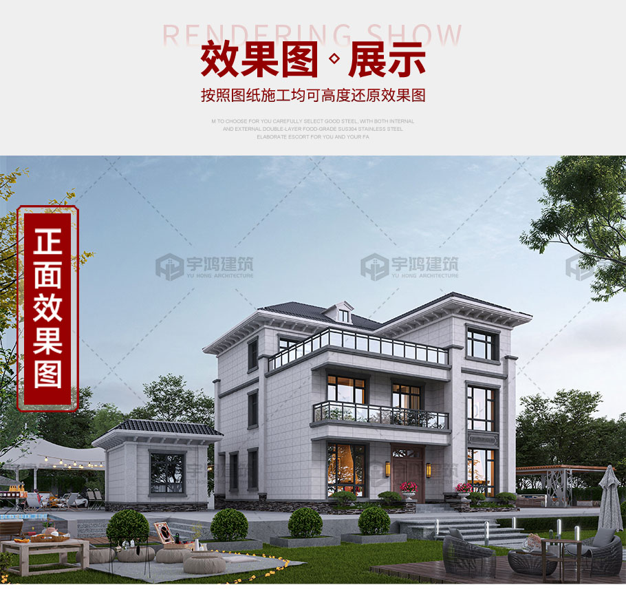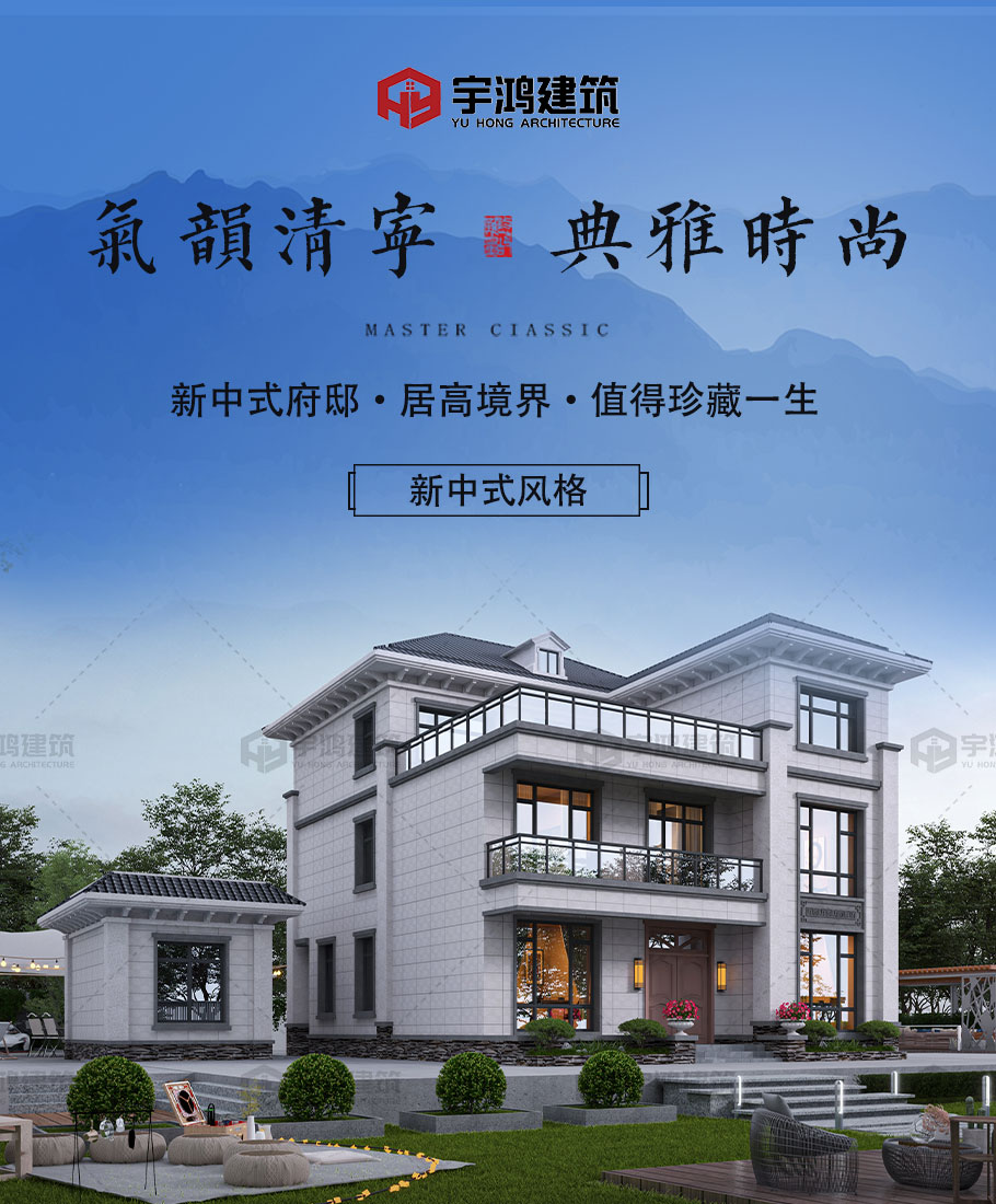 風(fēng)格:新中式 | 層數(shù):三層 | 結(jié)構(gòu)形式:磚混結(jié)構(gòu) | 圖紙編號(hào):YH-3-6608 |