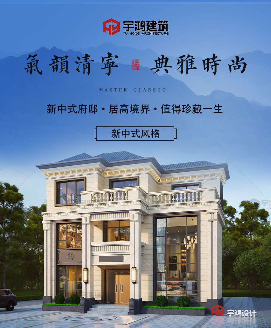 風格:新中式 層數:三層 結構形式:磚混結構 圖紙編號:YH-3-6622