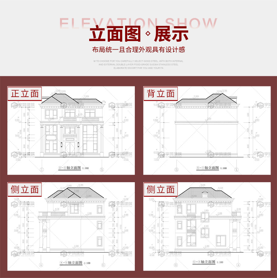 建筑圖: 建筑平面圖:一層平面圖,二層平面圖,三層平面圖; 建筑立面圖:東立面圖,西立面圖,南立面圖,北立面圖,剖面圖; 大樣圖:樓梯詳圖,細部大樣,門窗大樣