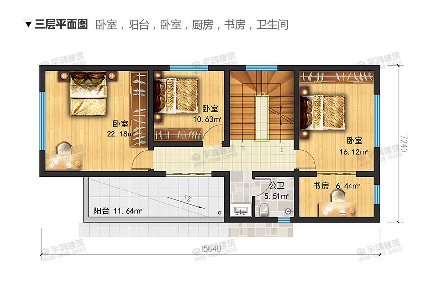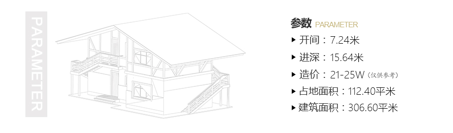 開(kāi)間:7.24米 | 進(jìn)深:15.64米 | 占地面積:112.4平方米 | 建筑面積:306.6平方米 |