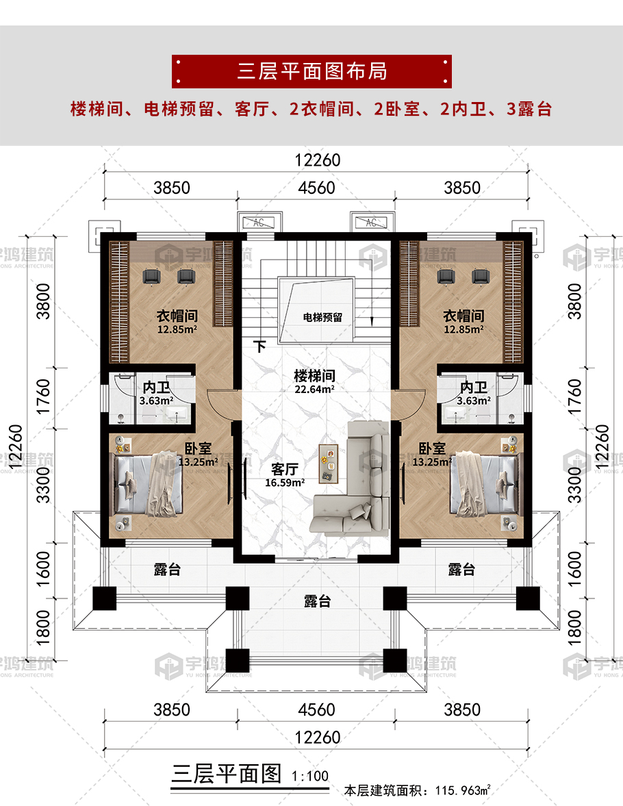 - 開間尺寸: 12.26米
