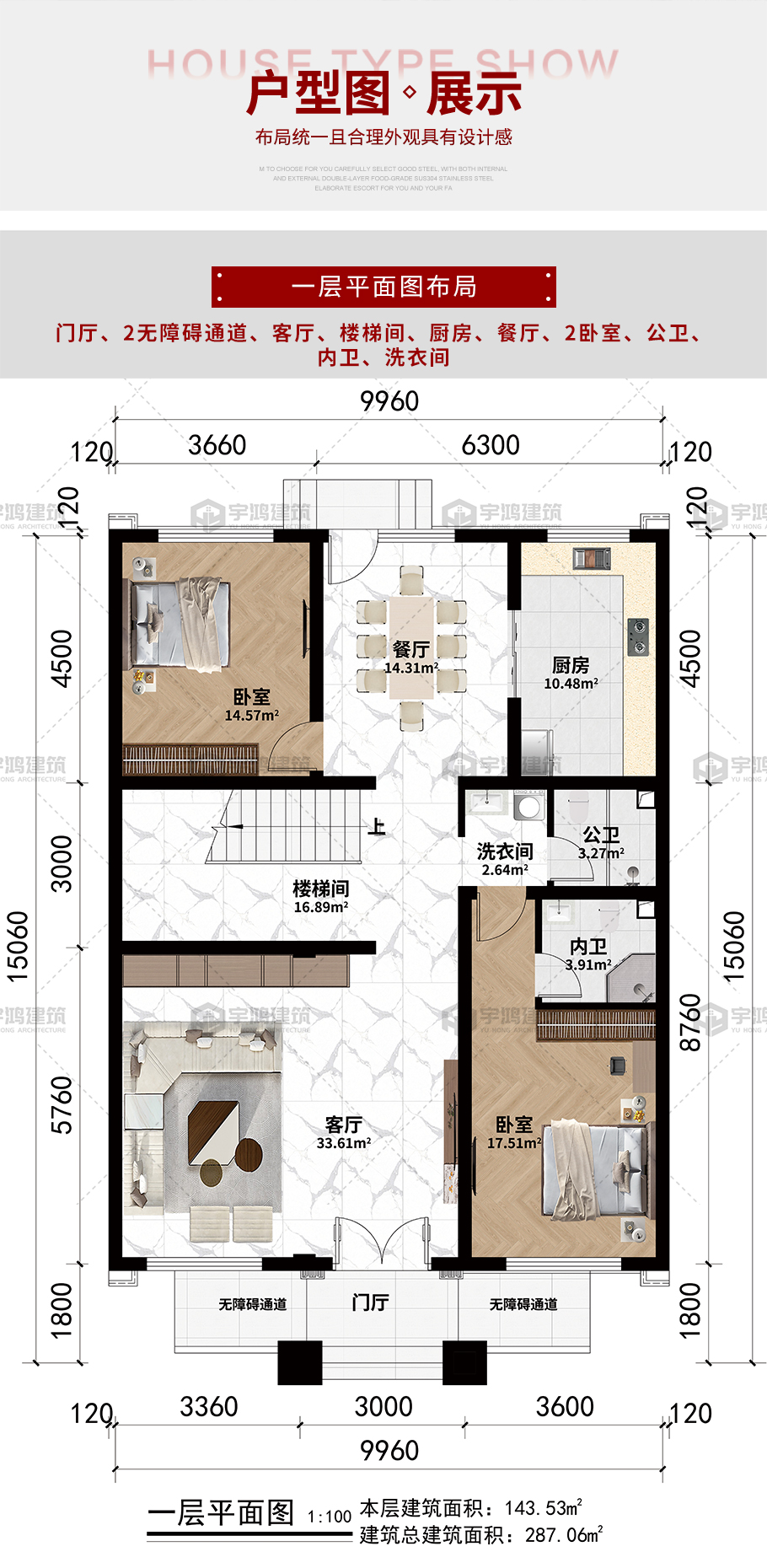 開間:9.96米 | 進深:15.06米 | 占地面積:143.53平方米 | 建筑面積:287.06平方米 |