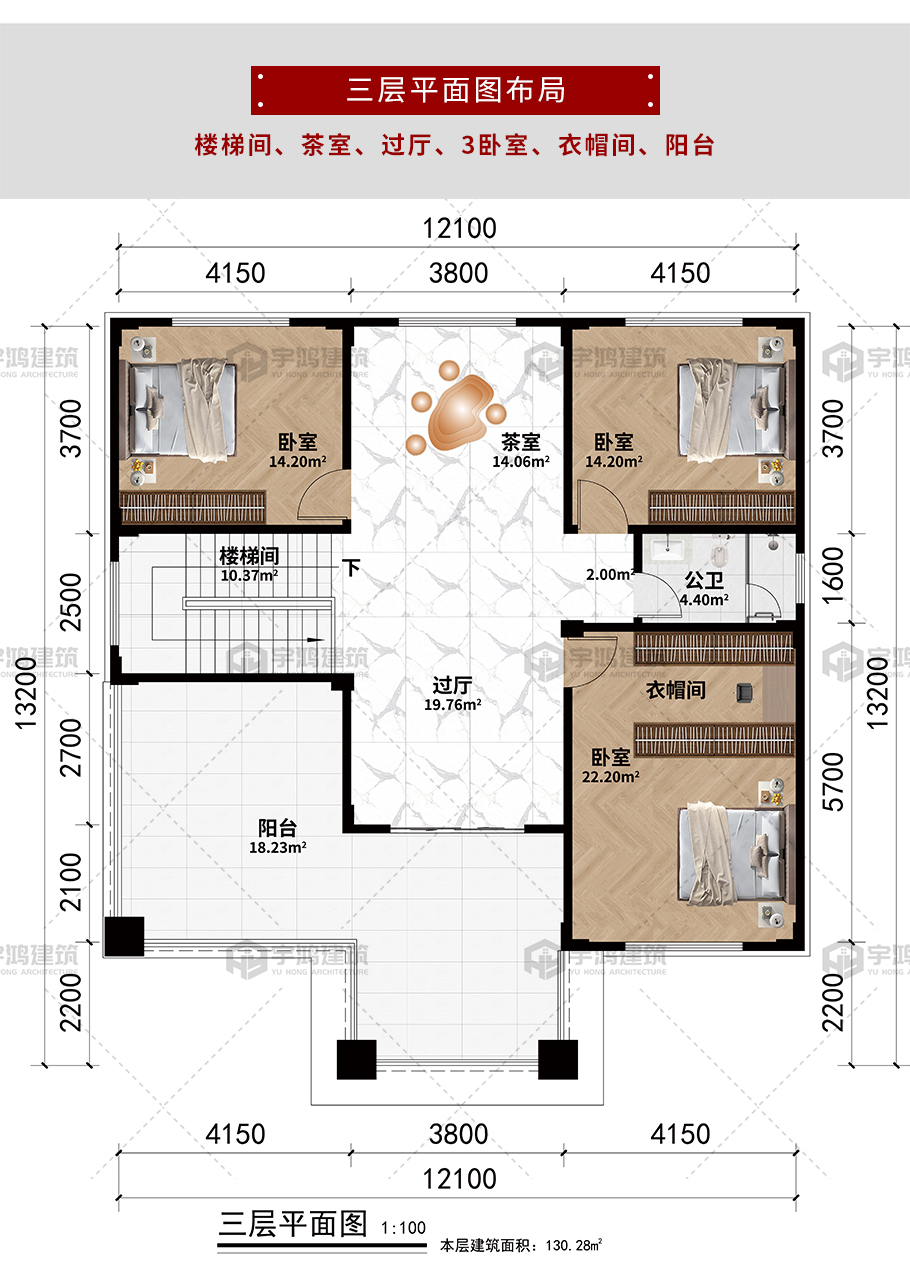 開間:12.1米 | 進深:13.2米 | 占地面積:149.43平方米 | 建筑面積:419.9平方米 |