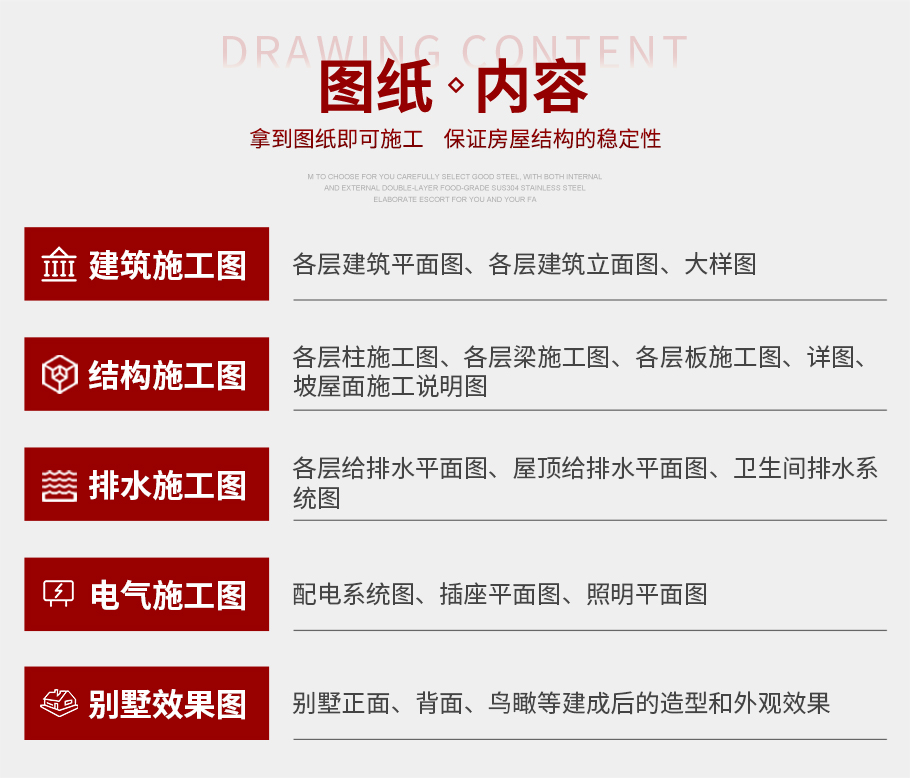 建筑圖: | 建筑平面圖:一層平面圖,二層平面圖,三層平面圖; 建筑立面圖:東立面圖,西立面圖,南立面圖,北立面圖,剖面圖; 大樣圖:樓梯詳圖,細部大樣,門窗大樣 |