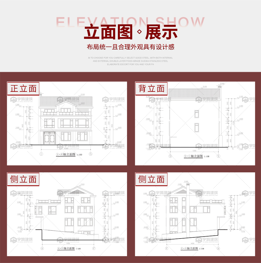 本案簡介: 帶電梯、地下室現代三層別墅全套圖紙