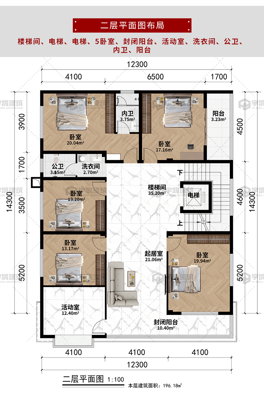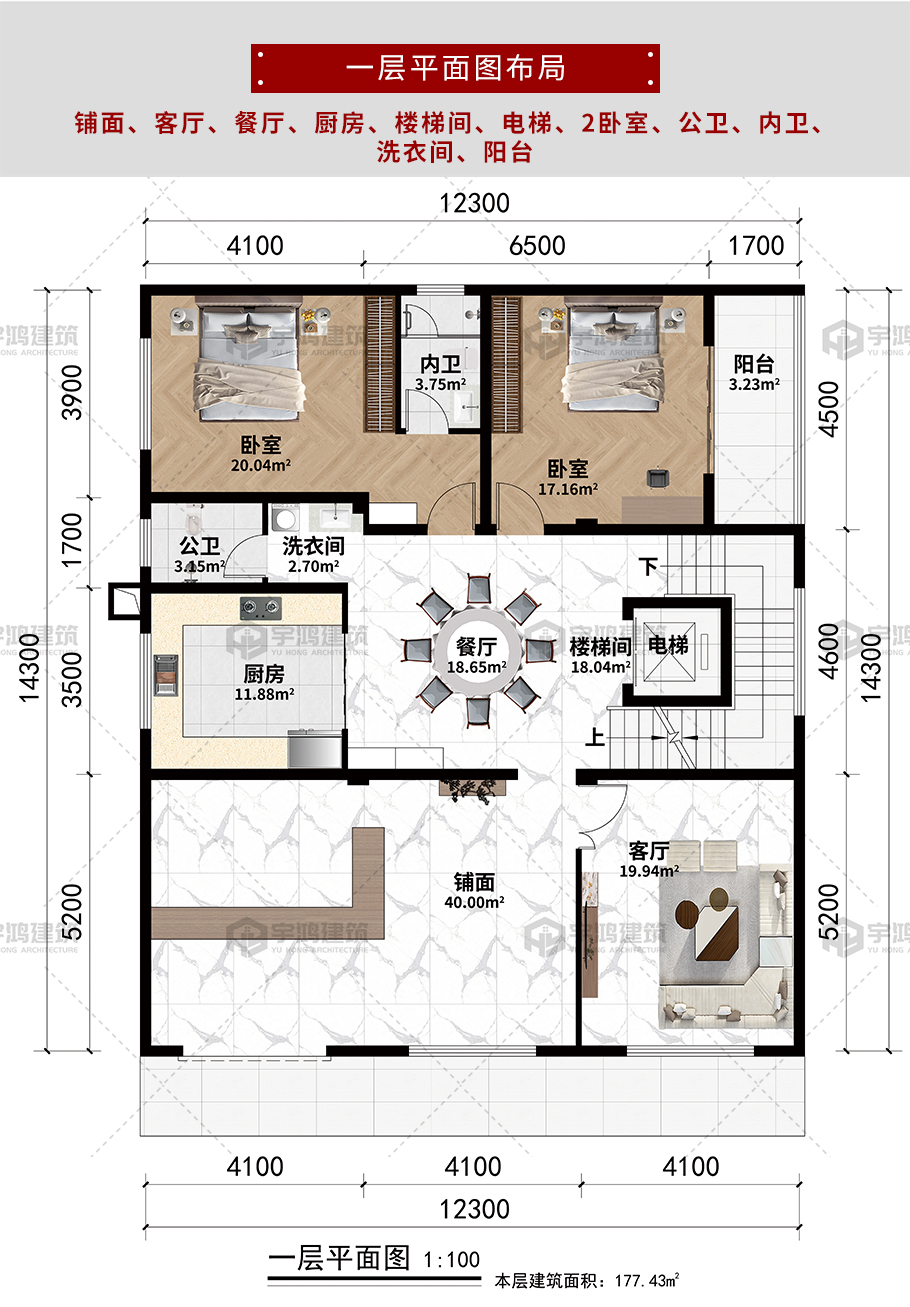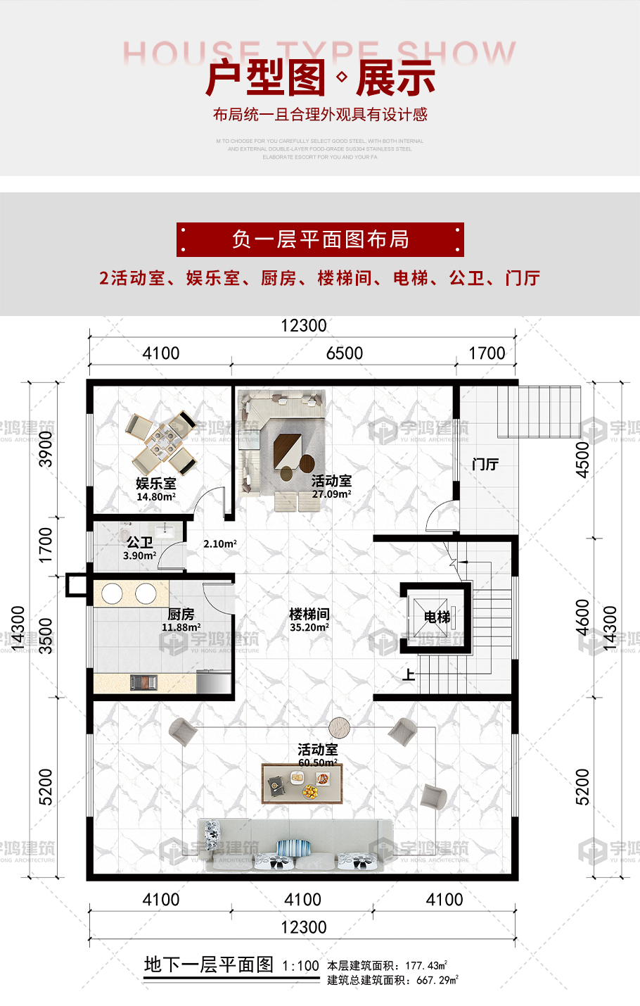 開間:12.3米 進深:14.3米 占地面積:117.43平方米 建筑面積:667.29平方米