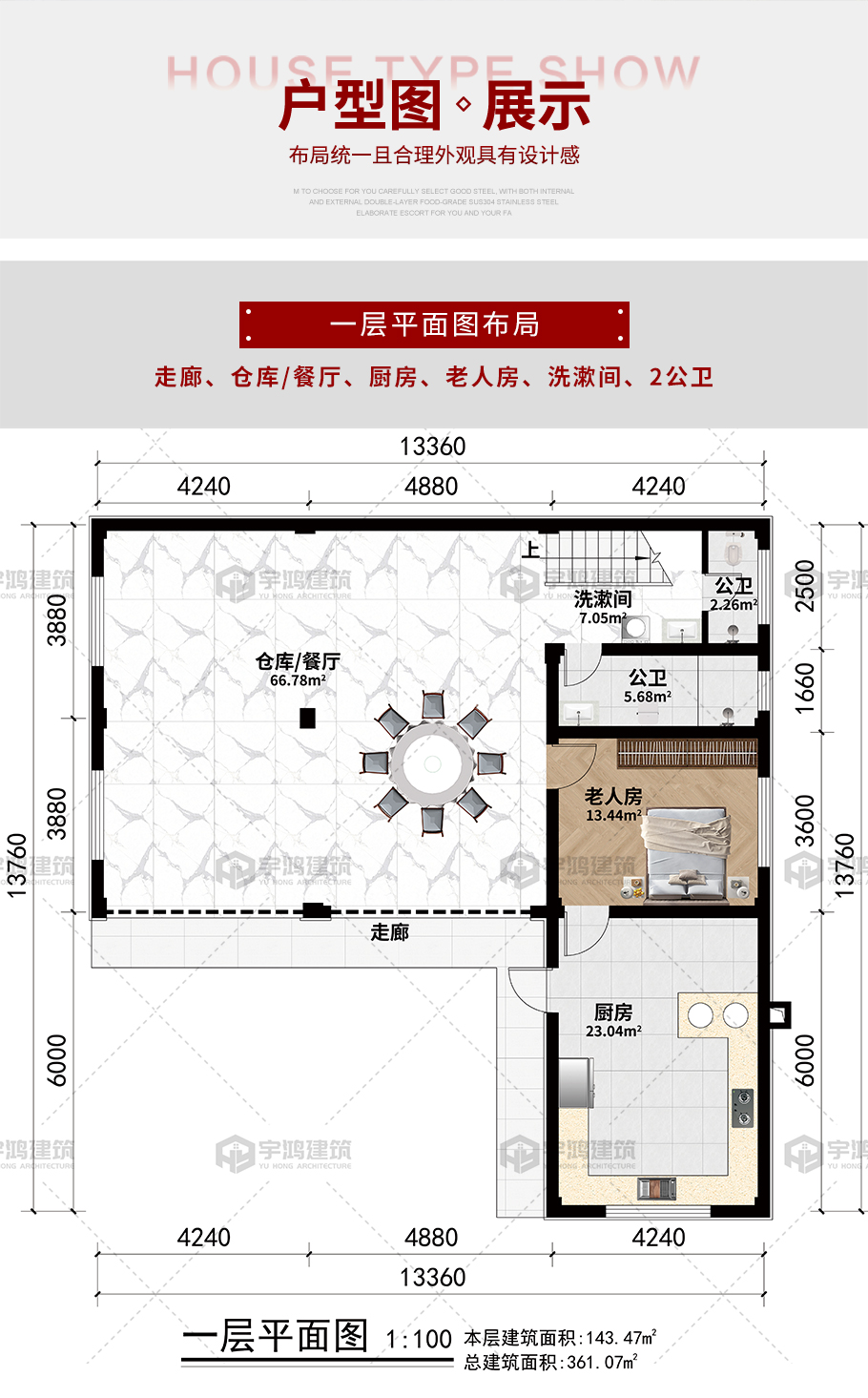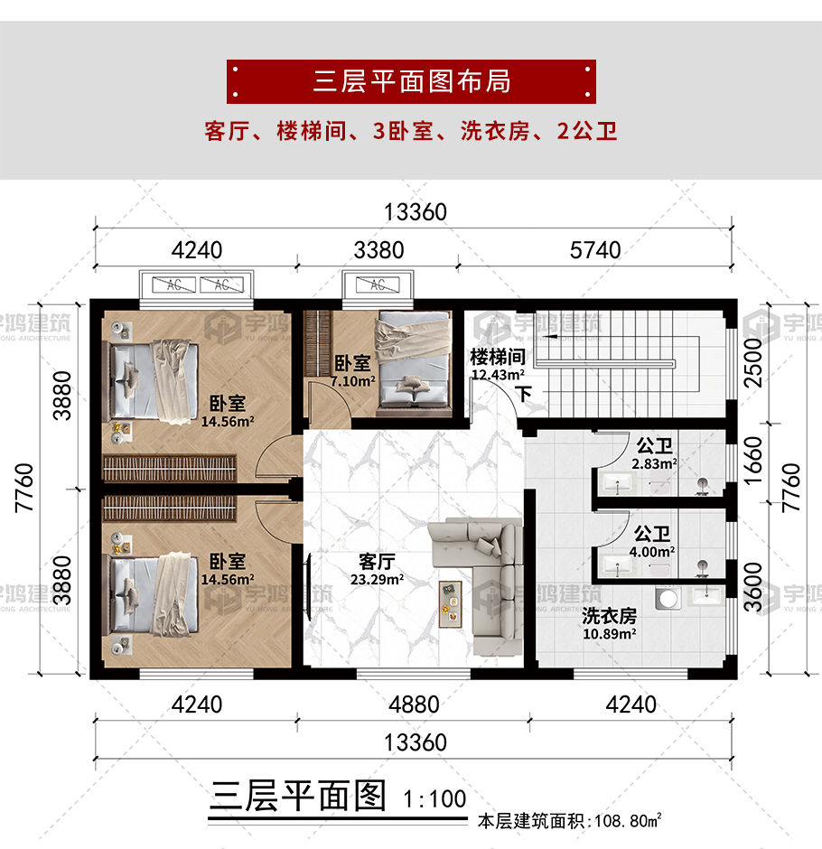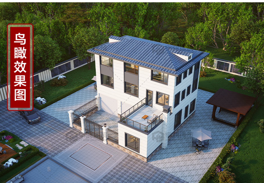 13.36x13.76開間進深 戶型方正的三層現代別墅全套圖紙