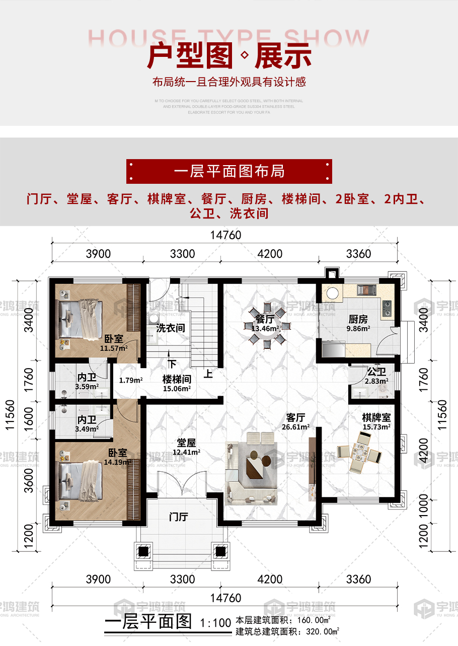 開間:14.76米 | 進深:11.56米 | 占地面積:160平方米 | 建筑面積:320平方米 |