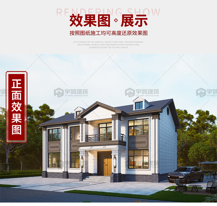 風格:新中式 | 層數:二層 | 結構形式:磚混結構 | 圖紙編號:YH-2-6805 |