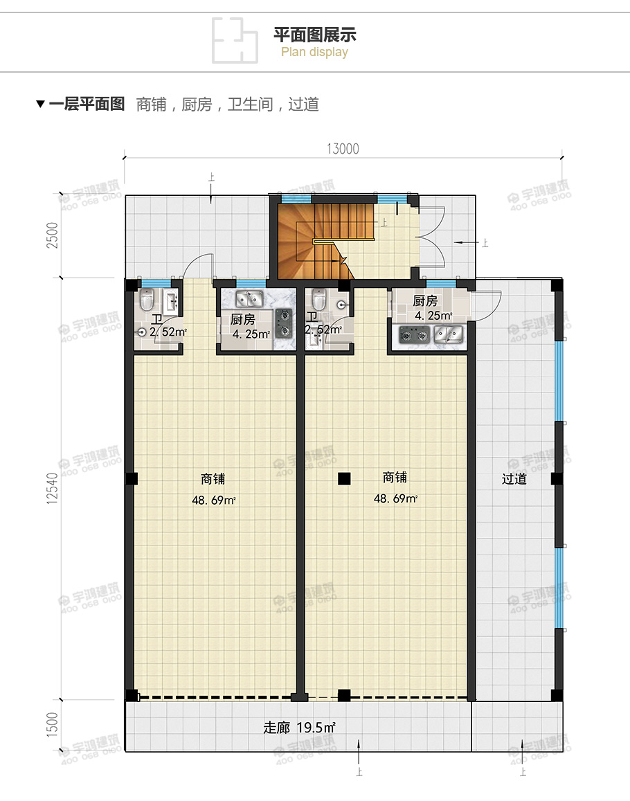 成品圖紙>13mx16m雙拼歐式帶商鋪農(nóng)村自建房圖紙