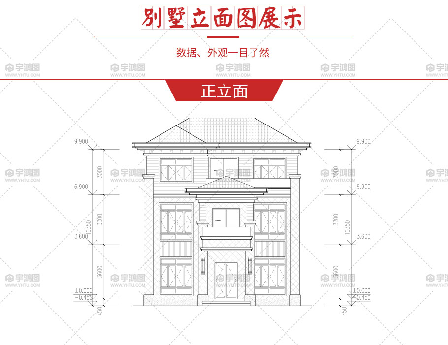 建筑立面圖:東立面圖,西立面圖,南立面圖,北立面圖,剖面圖;