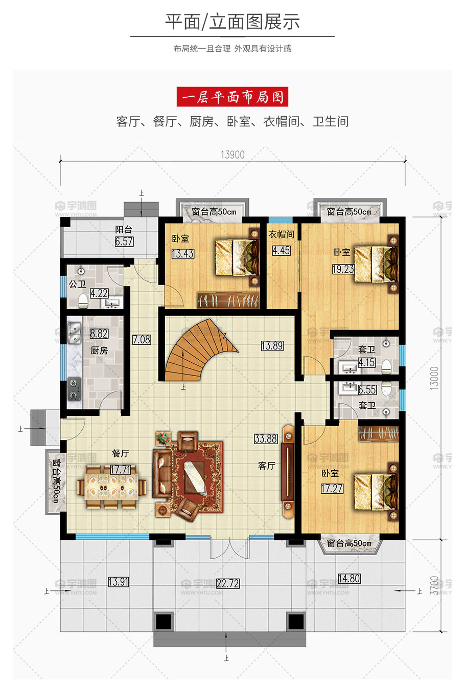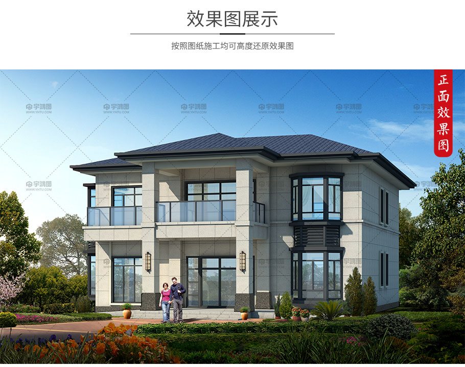 成品圖紙>清新亮麗農(nóng)村復(fù)式二層別墅設(shè)計圖紙及效果圖